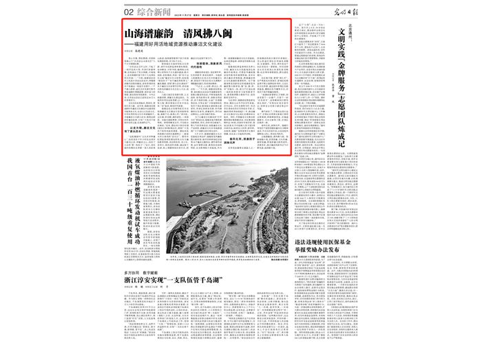 11月27日,《光明日报》2版头条报道了福建用好用活地域资源推动廉洁文化建设的经验做法,现予以全文转载。