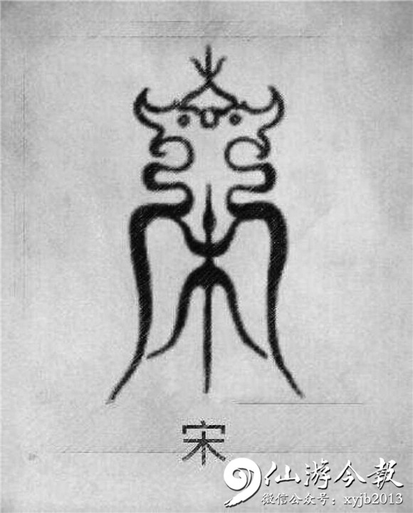宋氏图腾是宋姓以其祖先发明并继承“建木晷天”命名族称的。图腾由“宀”和“木”组成。木代表建木,“宀”上的点代表“天脐”,“冖”代表天穹,表示晷天历度。由于宋姓之先为商,商又因是玄鸟所生,故图腾上方两侧为象形玄鸟。宋氏族徽以古老的宋氏图腾作为设计蓝本,意在报本追远,与时俱进。