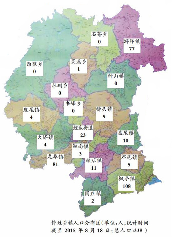 数据显示,我县钟姓人口不足500,大多分布在枫亭、龙华、游洋、鲤城等乡镇(街道)。根据枫亭镇辉煌村示山自然村多位较年长的钟姓宗亲口述,我县钟姓人200多年前从泉州市安溪县迁来。